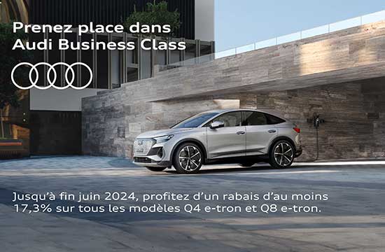 Durant les mois d’avril, mai et juin 2024 (ou jusqu’à nouvel ordre), notre partenaire Audi présentera spécialement ses modèles tout électriques best-sellers Q4 et Q8 e-tron / Sportback e et accordera une réduction spéciale supplémentaire.
