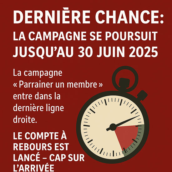 Dernière chance : notre campagne « Parrainer un membre » se poursuit seulement jusqu’au 30 juin 2025 !