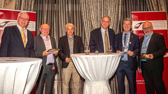 Deux tables rondes étaient au centre de la manifestation, l’une sur la question délibérément rhétorique « Les TP suisses ont-ils encore besoin de cadres à l’avenir ? » avec les CEO des CFF, du BLS et du SOB ainsi que le directeur de l’UTP. Puis Markus Jordi, responsable RH et membre de la direction du groupe CFF, et Markus Spühler, président de l’ACTP, ont échangé sur le thème « Que signifient les déclarations des CEO pour le partenariat social ? ».