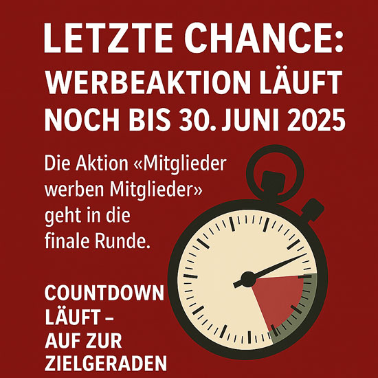 Letzte Chance: Unsere Werbeaktion «Mitglieder werben Mitglieder» läuft nur noch bis 30. Juni 2025!